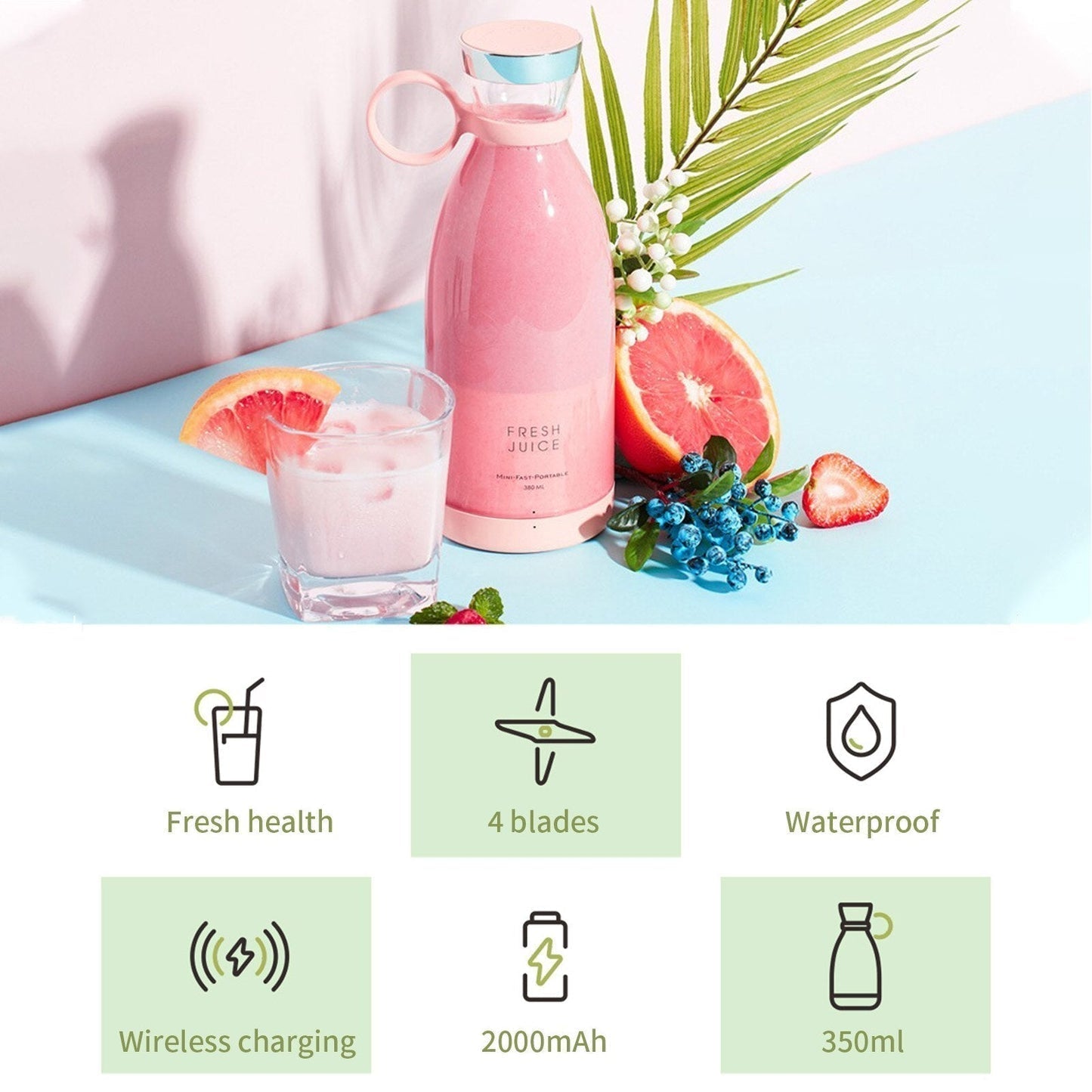 • The mini blender is as easy to carry around as a water bottle that can hold 350ml of juice, weighs only 460g, beautiful in appearance, and is easy to carry. After juicing, you can replace the bottom with a lid and take it away directly (The bottom lid color is randomly assigned). It is suitable for home, work, school, or travel.